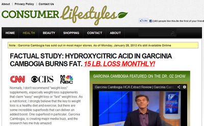 Perhatikan kedua website di bawah ini. Betapa meyakinkan penampilan dan review produk pelangsing yang ditawarkan. Website pertama menawarkan produk dari tanaman “Garcinia Cambogia”