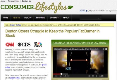 Lalu perhatikan website yang sama, kali ini menawarkan produk pelangsing dari bahan yang disebut “Green Coffee.”